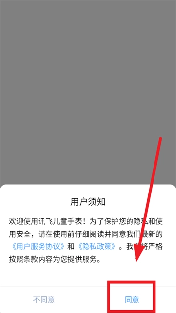 1.安装并打开讯飞儿童手表,先同意用户须知。