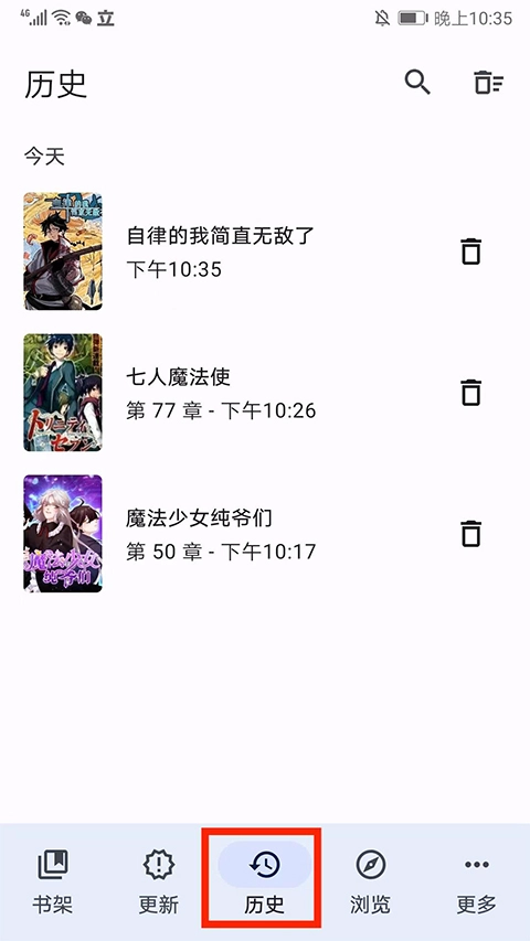 10、在历史界面,可看到自己的观看历史,选择相应的漫画可继续观看。