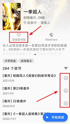 5、然后选择你想看的漫画,无论你是想添加到书架,还是到本地都可以轻松实现。