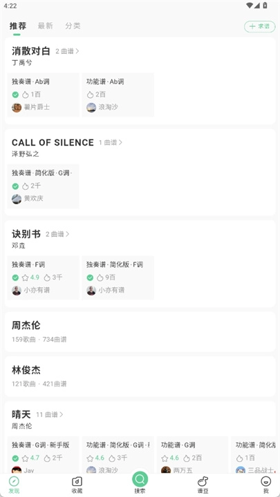 1.它包含数千首等待你收集的乐谱,并且可以随时在网上搜索大量著名歌曲。