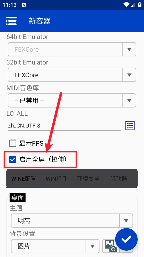 Winlator CMOD模拟器怎么换全屏