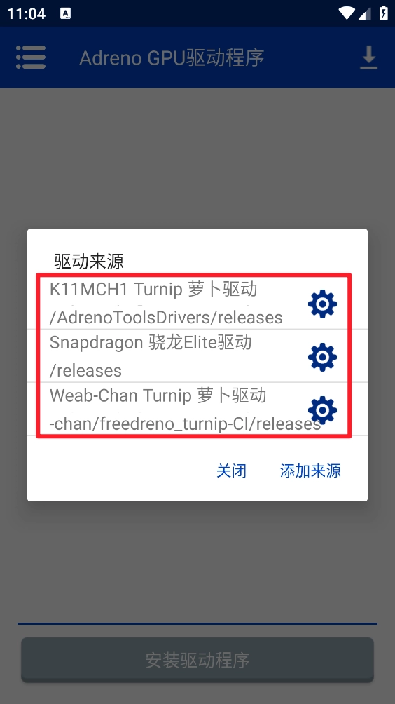 5、包含多个驱动选项,点击右侧所需图标即可选择,操作完成后刷新页面,所选驱动会显示在“Adreno GPU驱动程序”页面中。