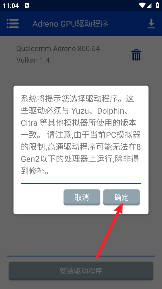 1、在“Adreno GPU驱动程序”里点击“安装驱动程序”按钮。