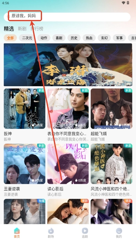 2、在这里输入我们想看的短剧名称;