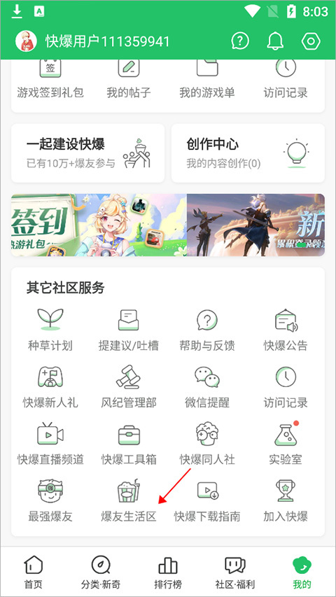 还可以进入【我的】页面中点击【爆友生活区】