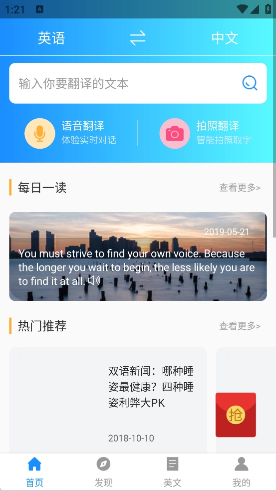 2.你可以通过输入语音进行翻译,也可以通过拍照内容进行翻译