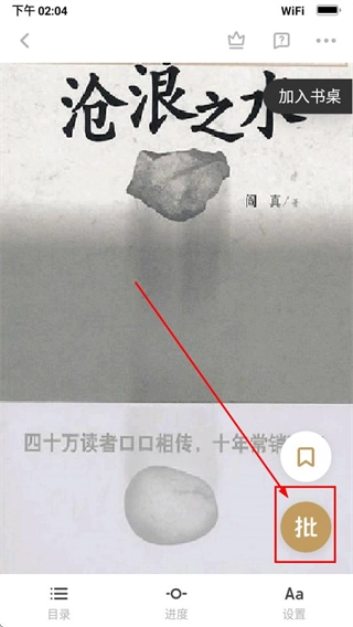 在阅读界面点击【批】按钮,就能进入批注页面,在这里可以为小说添加批注内容。
