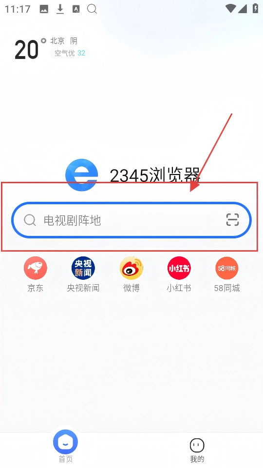 在2345浏览器的首页,搜索框支持输入内容,比如【电视剧阵地】,输入后就能查找相关内容,非常便捷。