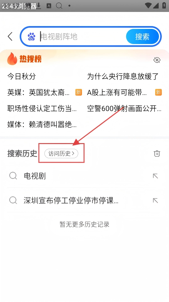搜索之后,在搜索页面可以看到搜索历史以及【访问历史】按钮,点击【访问历史】,就能查看之前的访问记录啦。