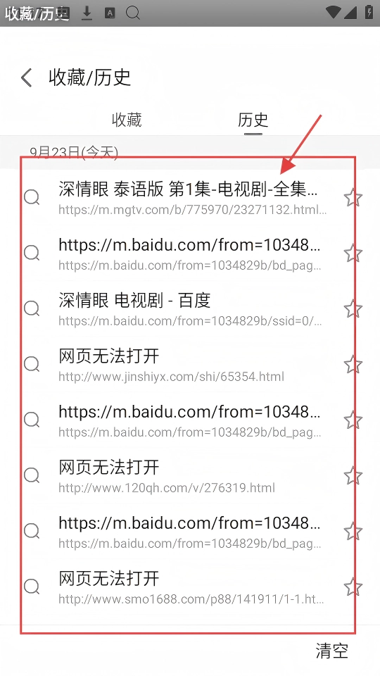 进入【收藏/历史】的历史页面,就能看到多条历史记录,里面包含网页链接等内容,这样回顾之前浏览过的内容就很方便啦。