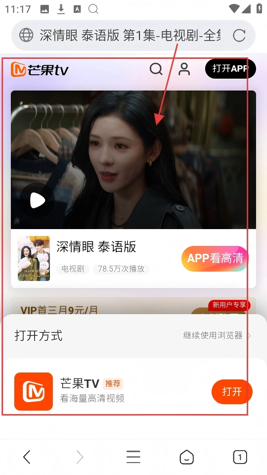 点击历史记录中的电视剧相关链接,就能进入播放页面,还可以选择用浏览器或者播放,这样能提升观看体验哦。