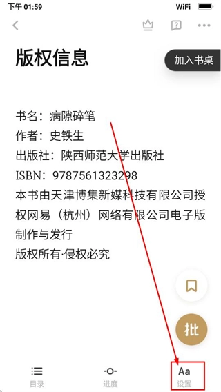 在阅读页面点击【设置】按钮,即可进入设置界面,对阅读相关的各项选项进行调整。