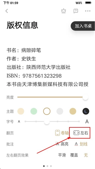 在设置界面挑选翻页的模式,像是【左右】翻页这种,就可以更换翻页的效果,让阅读体验变得更好哦。