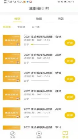 1、有多种的课程学习内容可以让用户进行选择,包括初级会计职称、中级会计职称、注册会计师、以及各种的其他课程等等。