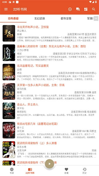内容十分充实:有声读物的作品涵盖面广,您可以从海量的图书资源里挑选心仪的并开启它,这样就能实时获取更新内容,尽享优质的听觉享受。