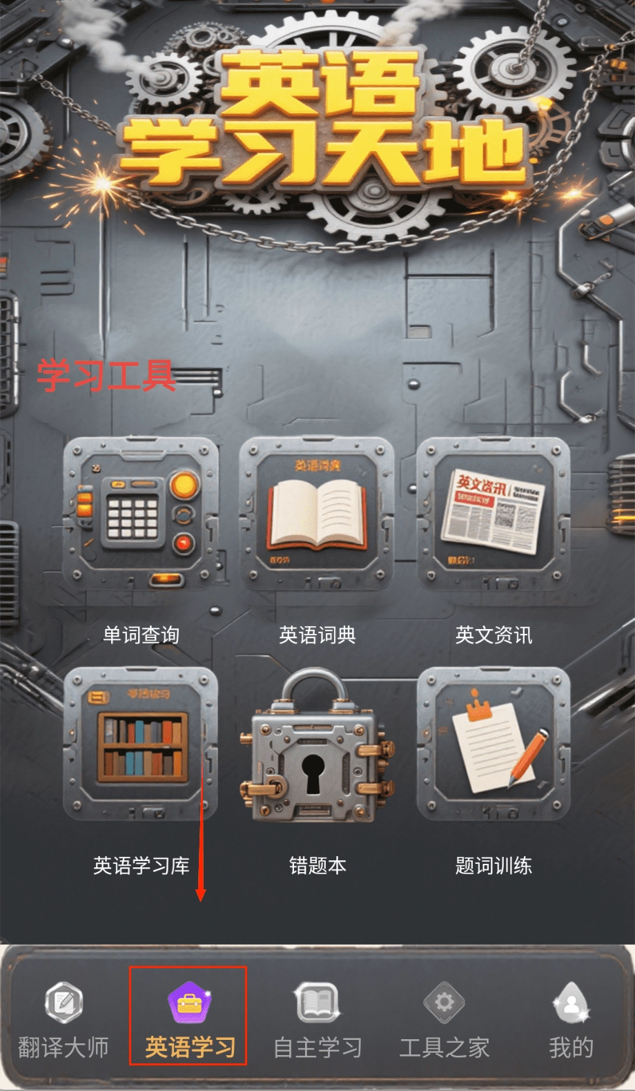 启动应用后,先点击同意协议进入主界面,接着在底部菜单里选择英语学习模块,就能找到单词查询功能;输入想要查询的目标词汇,就能获取该词汇的释义以及发音指导。