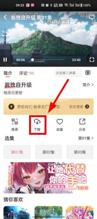 首先在软件里找到你想看的动漫,接着进入播放页面,再点击下方的。