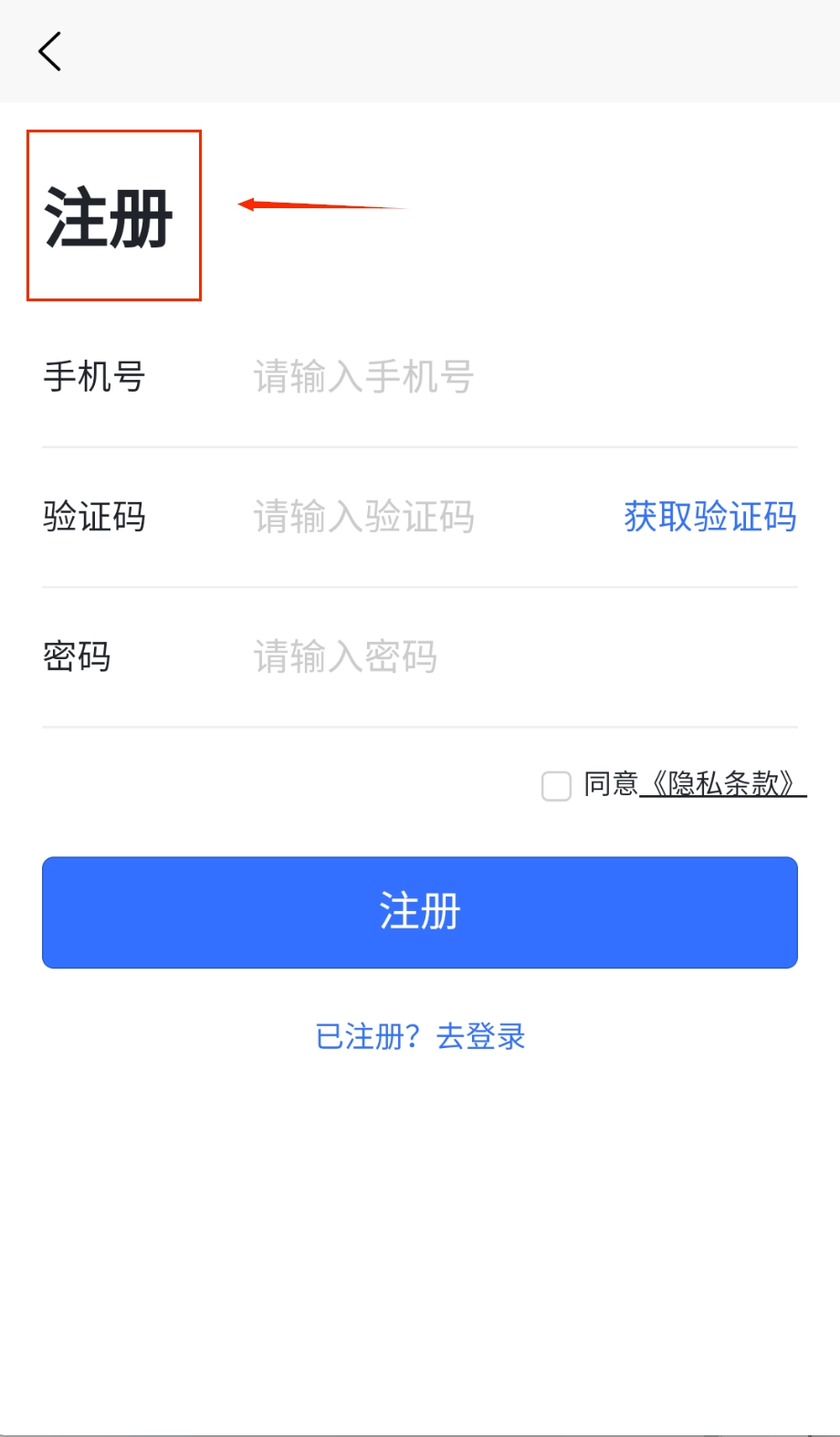 注册的时候记得留意下方那个“请同意隐私条款”的提示,找到旁边写着“同意《隐私条款》”的小方框并勾选上,要是不勾选的话是无法完成注册的哦。