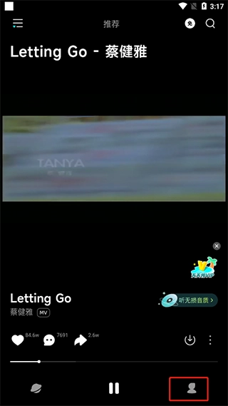 打开波点音乐应用,进入歌曲播放页面后,点击界面底部导航栏里的【我的】选项,就能进入个人主页了。
