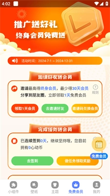 4、以下两种方式均可免费领取会员:一是分享至朋友圈;二是连续签到十天。