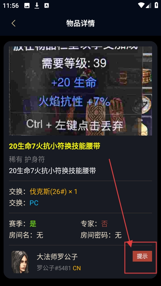 点击物品进入详情页后,点击【提示】按钮,就能查看物品交易的相关提示信息了。