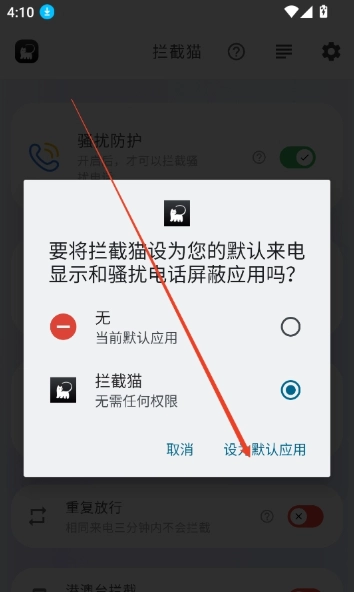 拦截猫最新版是一款能够将手机里的垃圾短信以及垃圾电话全部拦截的小工具,使用起来特别方便,你可以随时开启或关闭,能够适配不同的手机型号,界面非常整洁,如果你整天在被骚扰的话不妨试试吧。