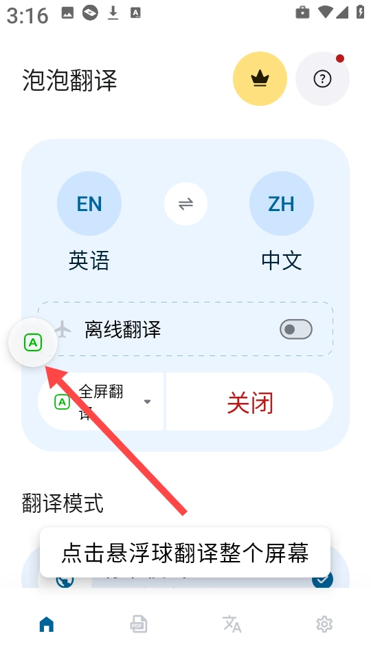4、接着点击界面上弹出的悬浮球,就能翻译整个屏幕的内容了。