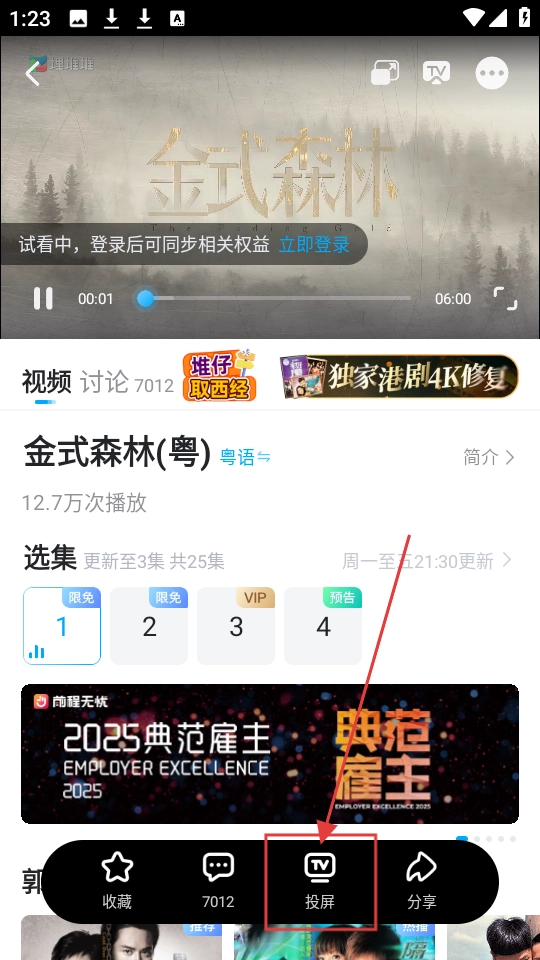 进入播放页面后,如果想要投屏观看,只需点击【投屏】按钮,即可进行投屏尝试。