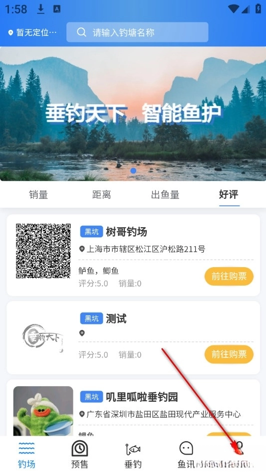 【钓场推荐】通过定位信息智能为你推荐钓场,便于找到距离更近、评论更好的钓场;