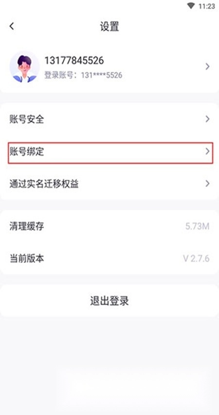 3、在设置菜单中找到并点击【账号绑定】选项。