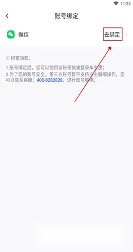4、进入绑定页面后点击【去绑定】按钮,系统将自动跳转至微信进行授权绑定。