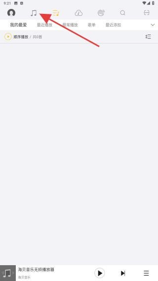 1、打开海贝音乐,点击首页导航栏的音符图标。