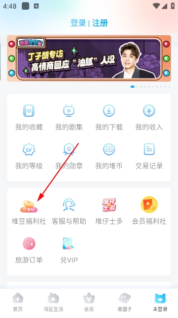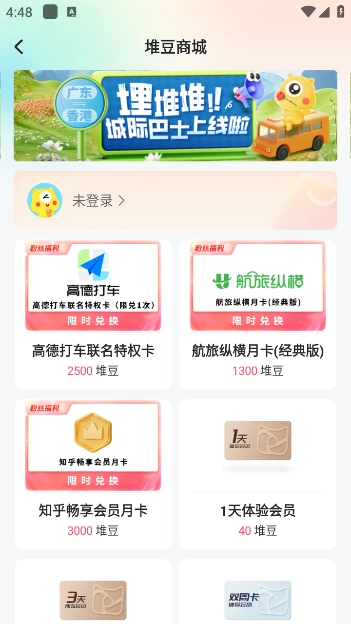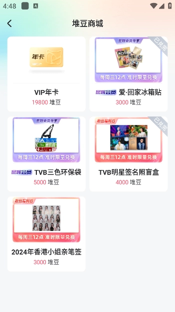 2、在堆豆商城界面你可以使用堆豆来免费兑换1天、3天和7天的VIP卡,而兑换需要的堆豆可以点击上方的新人看剧做任务。