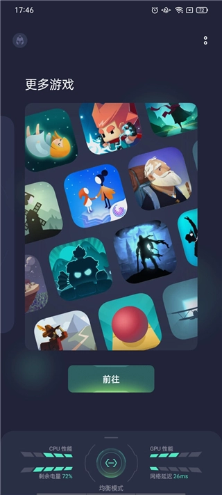 4、点击更多游戏下方的“前往”跳转至游戏中心,新游戏。