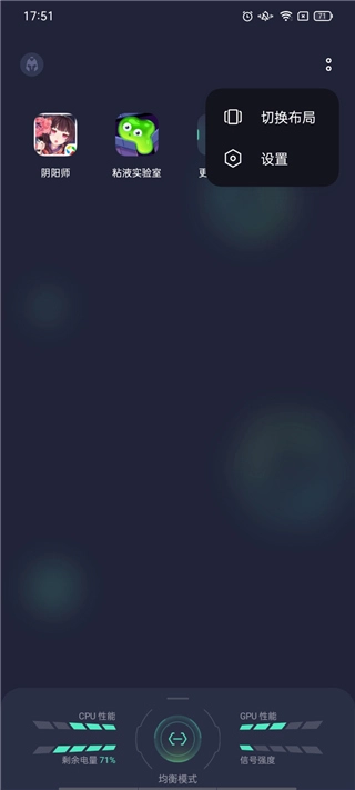 5、点击右上角设置图标,可切换布局、查看CPU/GPU性能等详情。