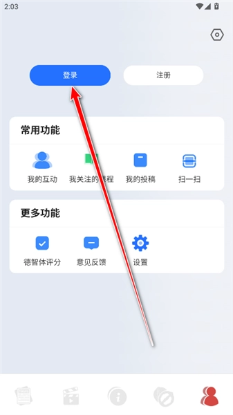 1.请安装并打开中国传媒大学,点击右下角的人像。