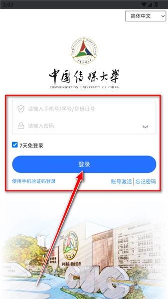 3.请输入手机号码/学号/身份证号码、密码,接着点击登录就好了,或者使用手机验证码登录也是可以的。