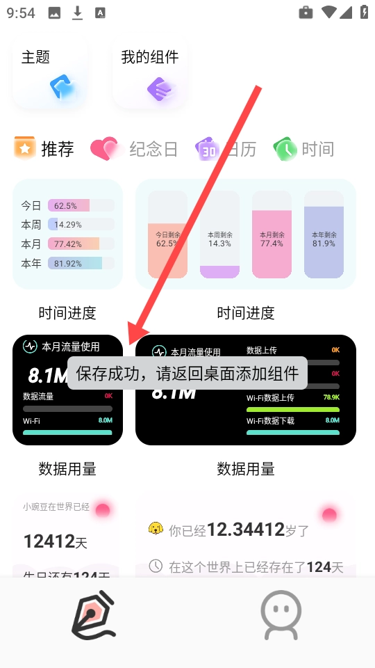 4、稍等片刻,待界面显示“保存成功”的提示,小组件的所有设置就全部完成了。