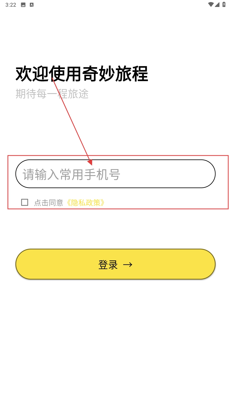 打开应用,填写手机号。