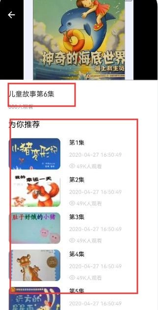 点击你感兴趣的故事,比如【儿童故事第6集】,就能进入该故事的详情页面。
