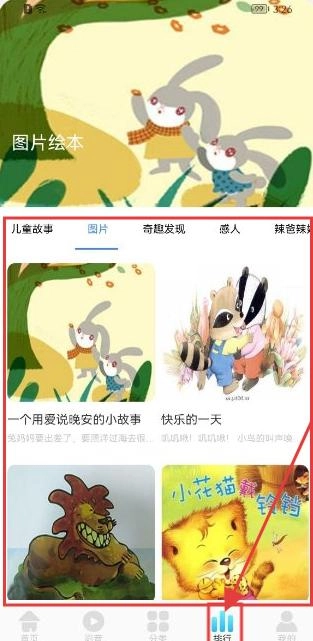 你还能在【排行】页面浏览各类故事的排行榜,从中挑选更多故事来阅读或者收听。