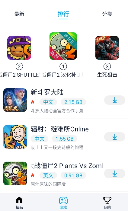 首先玩家打开【游戏】,在排行板块中即可浏览到当前最热门的植物大战僵尸国际服版本客户端。