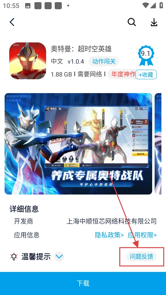 进入游戏详情页面后,点击【问题反馈】选项,即可进入反馈页面。