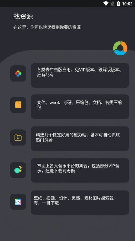 《找资源》是一款功能全面的手机资源搜索软件,无论是音乐、影视、小说还是各类应用等丰富资源,都能轻松帮你找到。你可以随时搜索所需资源,海量内容任你免费获取。软件还提供优质的磁力使用体验,操作便捷,让你能尽情享受各类资源带来的便利。