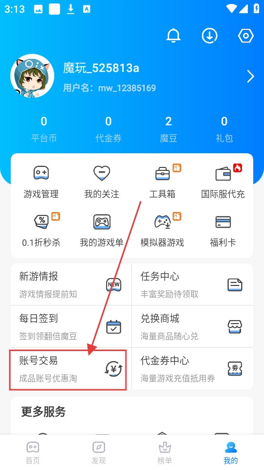 首先请在本站安装魔玩助戏盒子,接着点击打开该软件进入首页,首页界面如下所示。
