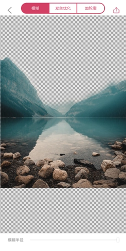 抠图完成后,接下来就可以点击“下一步”进行优化操作了。你只需在模糊处理、发丝优化以及添加轮廓这几个功能里,挑选出需要的来使用就行。