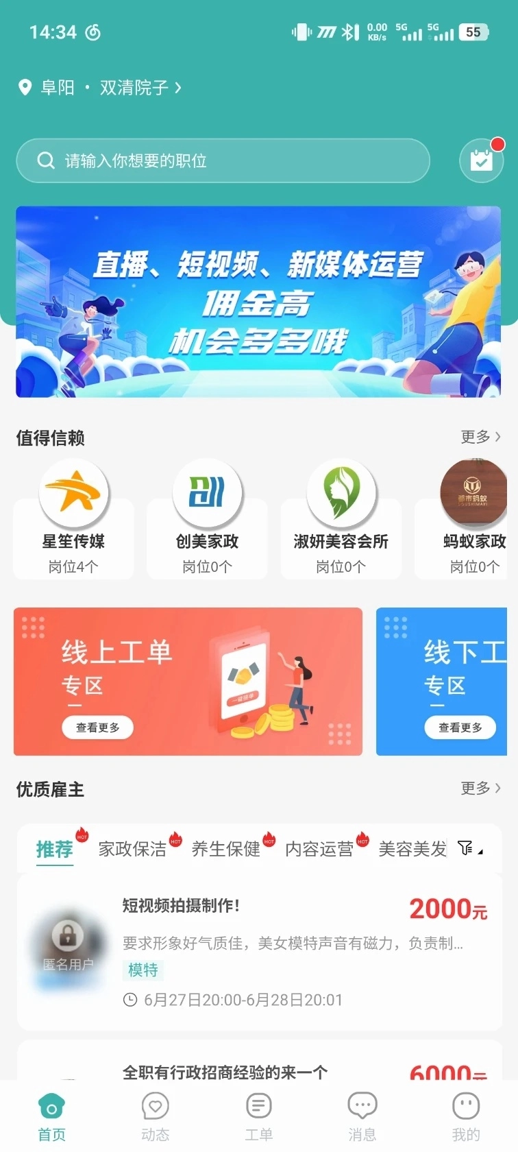 临时任务发布便捷,快速匹配附近服务人员。