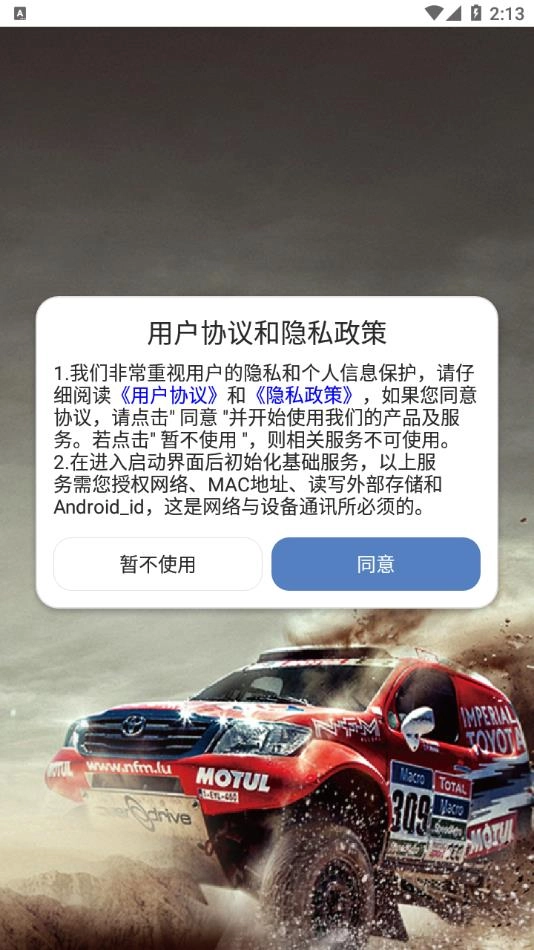安装软件后打开,同意用户隐私协议。