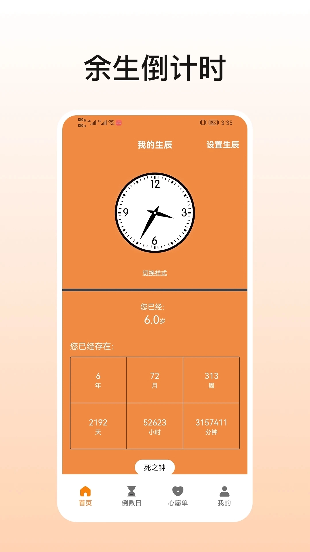 【死之钟】 预测寿命时长,以生命倒计时的形式,帮你计算剩余日子里能完成的事的次数。