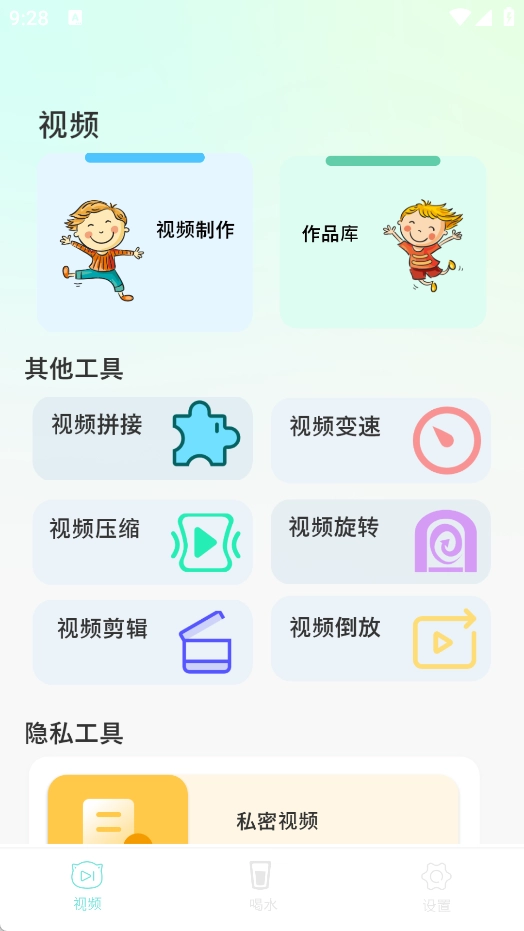 首页设有视频、其他工具和隐私工具三大板块,可随时对视频进行处理。